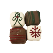 $3.50Filled with a vanilla (Presents and Ornament) or milk (Gingerbread Man) cake ganache then covered in smooth white or milk chocolate and hand-decorated